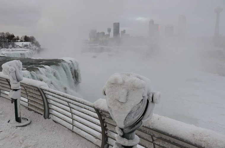 Estradas, escolas e outros serviços públicos foram encerrados em vários estados norte-americanos, mas na fronteira natural que separa os dois países o mau tempo trouxe um cenário que tem deixado a Internet em alvoroço: as cataratas de Niágara congeladas.